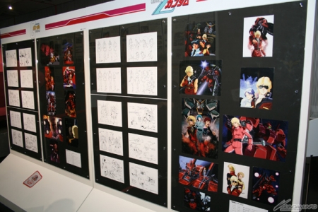 ▲『機動戦士ガンダム』から『逆襲のシャア』に至る設定資料や作品の絵コンテなど、シャアに関連する貴重な資料がずらり。