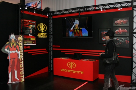 ▲シャアがテストパイロットを務める、現在展開中のプロジェクト「シャア専用オーリス」と「ジオニックトヨタ」を紹介するブースも設けられている。