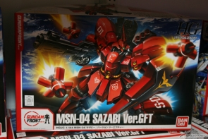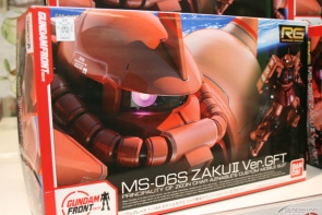 ▲今回の企画展にあわせて、「RG シャア専用ザク Ver.GFT」、「HGUC サザビー Ver.GFT」をはじめとした様々な新アイテムの販売も行われているぞ。