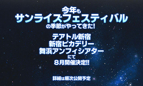 Sunrise Festival, a showcase of Sunrise's best animation works, will be held this August at Theatre Shinjuku, Shinjuku Piccadilly, and Maihama Amphitheater!