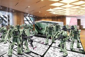 期間中は、全高約6mにおよぶ1/3スケールの「ガンダム」と「シャア専用ザク」をはじめ、ガンプラ「RGシリーズ」をモデルにした1.8mの「ザク」20体や、全長10mの巨大な「ホワイトベース」といった大型展示が行われ、会場はガンダム一色となる。