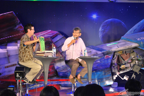 前回の「安彦良和×板野一郎×氷川竜介 トークショー」に続く「ガンダムフロント東京スペシャルナイト第3弾」は、庵野秀明さんと氷川竜介さんによるトークショー。庵野さんは「安彦良和アニメーション原画集『機動戦士ガンダム』」で責任編集を、氷川さんは構成と編集を担当されていた。今回は原画集を中心に、庵野さんから見たアニメーター・安彦良和の仕事ぶりが語られていった。
