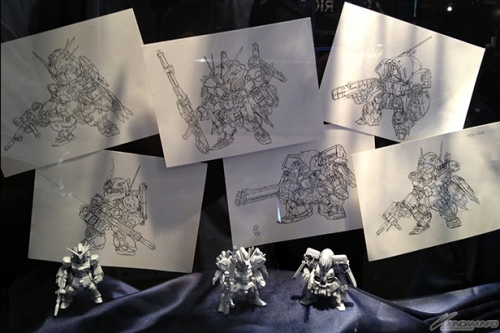 ▲ガンプラで戦う「ガンダムブレイカー」は、ゲーム内でパーツを集めて自分だけの機体が作れる!そんな自分だけの機体の作例も展示!