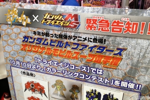 ▲体験コーナーは終始多くの人が!そして「ガンダムビルドファイターズ オリジナルモビルスーツ選手権」が10/10から開催されるという告知も!