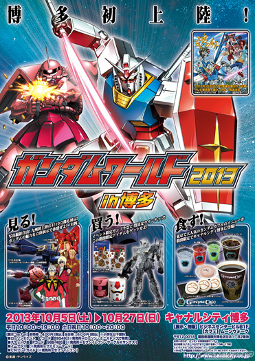 また、イベント限定グッズや限定ガンプラの販売、特設の「出張ガンダムカフェ」など、展示以外の楽しみも充実。この秋は、「ガンダムワールド2013 in 博多」へ遊びに行ってみよう。