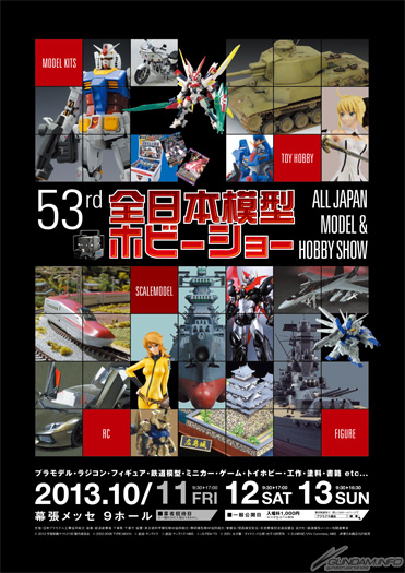 日本プラモデル工業協同組合が主催する「2013 第53回 全日本模型ホビーショー」が、10月11日(金)から13日(日)にかけて、千葉・幕張メッセで開催される。