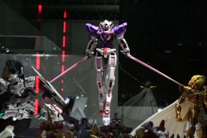 今年は52のホビー関連企業・団体がブースを出展し、過去最大級の規模で展開するバンダイブースでは、ガンプラを中心に数多くの最新アイテムの展示や発表が行われた。
