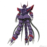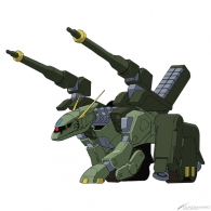 寺岡: | ザクアメイジングが一体目で、バックパックをデザインするのがメインだったんですがけっこう商品開発上の約束事が多くて大変でした。パピヨンは顔が決まらなかったんです。個人的には永野護さんの描いたキュベレイの顔がすてきだったんですが、顔や肩のあたりが変わっていないと商品的に変わった感じがしないんですね。画面上でもバストアップが多いので印象を変えるために、あのデザインになりました。 K9の背中に犬(K9ドッグパック)を付けるというアイデアは馬場さんからです。最初は本当にドーベルマンみたいなのをオーダーされたんですが(笑)、4足戦車みたいな感じに落ち着きました。 |