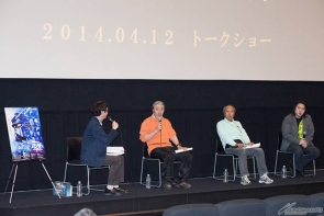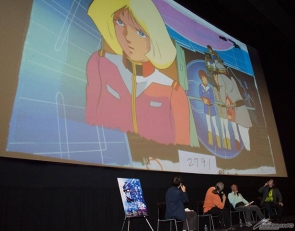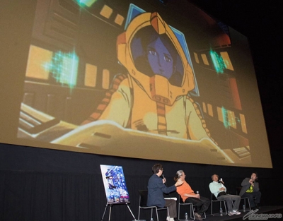 登壇したのは、板野一郎(アニメーション監督、劇場版三部作アニメーター)、関田 修(アニメーション監督、劇場版三部作フロアディレクター)、福井晴敏(作家、『機動戦士ガンダムUC』ストーリー担当)の3名。司会はアニメ特撮研究家の氷川竜介が務めた。