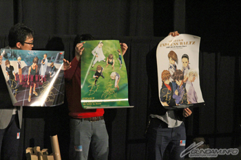 ▲今回プレゼントコーナーに登場したのは放送時のポスター。なんとバンダイビジュアルにも2枚しかなかったという超貴重なものまで。両氏とも「これは欲しい」と思わず声をあげていた。