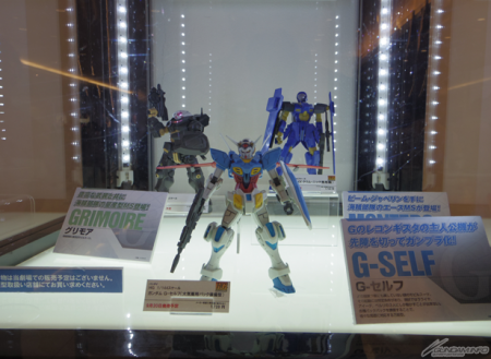▲9月から11月にかけて発売予定の「HG ガンダム G-セルフ(大気圏用パック装備型)」、「HG グリモア」、「HG モンテーロ(クリム・ニック専用)」の展示も!