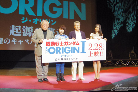 At the event, footage from Mobile Suit Gundam through Char's Counterattack, and from The Origin, played backed by The Origin's score as guests Shuichi Ikeda (voice of Char Aznable,) Mayumi Tanaka (voice of Casval Rem Deikun,) and Megumi Han (voice of Artesia Som Deikun) took the stage.