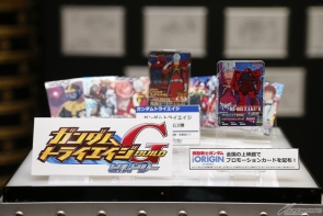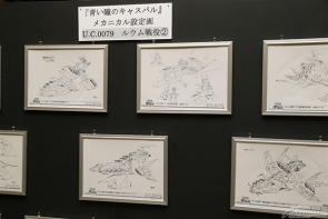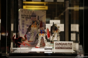 Rare materials including art boards of the characters and mecha, the original cover art for the disc release, and comic manuscripts were on exhibit at the theater, alongside products like the "HG 1/144 Char's Zaku II" and "Gundam Fix Figuration Metal Composite RX78-02 Gundam The Origin [Re:Package]" slated for an April release and even a display for Gundam TryAge, which has added The Origin to its roster.