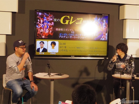 この日のイベントは、『機動戦士ガンダム THE ORIGIN』のプロデューサーである谷口 理氏と、『ガンダム Gのレコンギスタ』のプロデューサーである小形尚弘氏が、互いの作品について熱く語うというもの。