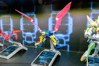 ▲『ガンダムビルドファイターズトライ』コーナーは、ガンプラの展示がメイン。好評発売中のものから今後発売される予定の新作まで、ずらり勢揃い!
