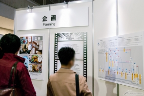 ▲『ガンダム Gのレコンギスタ』を例にアニメ制作の現場を紹介する「Production Works Street」では、制作進行として働くベルリがお出迎え!普段見ることのできない制作現場の様子に、来場者は真剣なまなざしを向けていた!