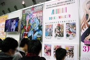 ▲「KADOKAWA」ブースでは、創刊30周年を迎えた「月刊ニュータイプ」の歩みを振り返る企画のほか、無料で読めるウェブコミックマガジン「ComicWalker( コミックウォーカー)」と総合電子書籍ストア「BOOK☆WALKER」の展示も!