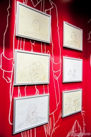 ▲『機動戦士ガンダム THE ORIGIN』コーナーでは、貴重な原画に加え、「初回限定版Blu-ray Collector’s Edition」をはじめとしたパッケージや豪華特典を展示!