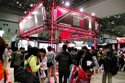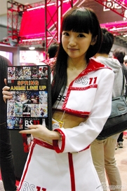 ▲『ビルドファイターズトライ』と『G-レコ』を放送中の「BS11」ブースでは、春のラインナップパンフレットを配布!