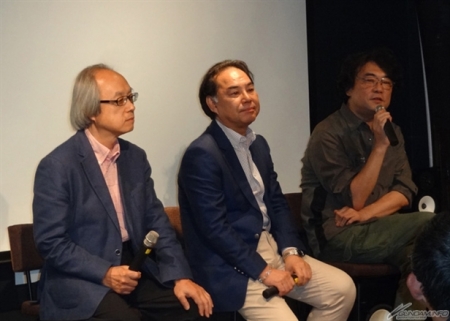 ▲左から、今西隆志監督、音響監督:藤野貞義氏、音楽プロデューサー:藤田純二氏