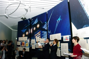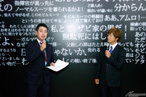 On July 17th, shortly before the opening, a press conference featuring Toru Furuya (voice of Amuro Ray) and Sunrise General Manager Sasaki was held at the gallery. The two spoke of exhibition highlights and memories of making Gundam.
