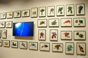 ▲大阪展の「ガンプラ大作戦」で制作された1,000体のガンプラは、会場と同フロアにあるカフェエリア「THE SUN」にて展示。1体だけ組み込まれた「RX-78-2 ガンダム」は、アムロ・レイ役の古谷 徹氏が今回のために制作したもの。