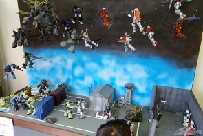 ▲東京都立竹早高等学校、高輪中学校・高等学校、海城高等学校の模型部員によるガンプラ作品を展示!
