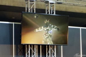 10月3日(土)発売予定の「HG 1/144 ガンダムバルバトス」は、外装の組み替えが楽しめるほか、色々な武装もあり、アニメ本編での活躍を手元で再現することができる。壇上のモニターでCM映像が流れると、その高いクオリティに会場からは拍手が沸き起こった。