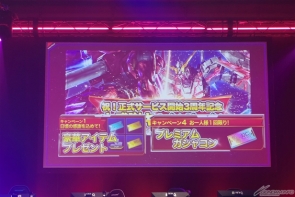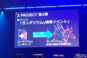 また、12月16日(水)より順次実施されるアップデート「Ζ PROJECT」の一部情報が先行公開され、新機体として「百式」と「キュベレイ」が実装されることが発表された。両機体の映像も公開され、特に「キュベレイ」のファンネル機構に会場は大盛り上がりとなった。