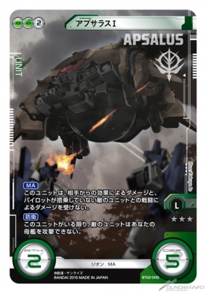 注目は「アプサラスI」!母艦を守る防衛効果に加えて、パイロットの搭乗していないユニットや効果のダメージを受け付けない「MA」により、序盤の鉄壁として相手に対応を迫り、相手の展開を遅らせます!