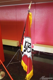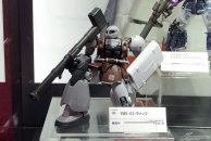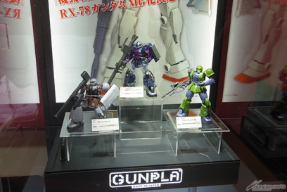 ▲ステージ上にもあった旗や「HG 高機動型ザクII 劇場限定リミテッドクリアVer.」などのガンプラも!