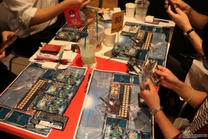 After the talk show was over, the venue was converted to hold the world's fastest "Wings to the Future" booster draft tournament. The newest cards were made available to be used, and soon the venue heated up with competition.