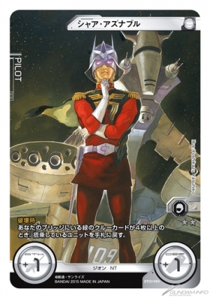 ▲「シャア・アズナブル」は、“破壊された時に搭乗しているユニットを手札に戻す”効果を持っている。これを「ザクキャノン」や「サイコ・ザク(ダリル機)」のような、敵ユニットを直接破壊できるユニットにセットすると、セットしたユニットが相打ちになったり迎撃されても手札に戻り、戻ったユニットをまた「シャア・アズナブル」付きで再出撃させれば、何度でも強大なユニットを撃破できる必殺コンボが完成するのだ。