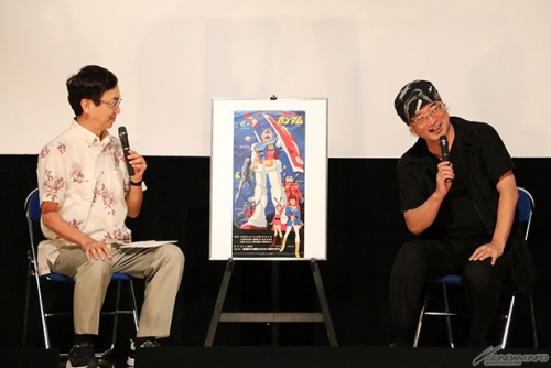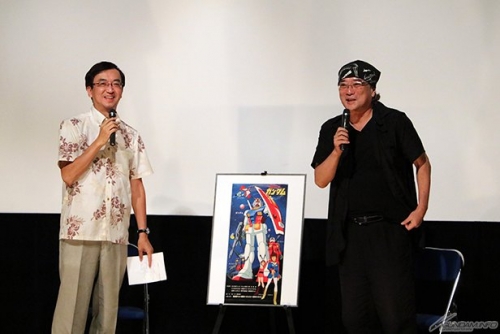 Theatre Shinjuku, Shinjuku Picadilly, and TOHO Cinemas Shinjuku have been holding the “Sunrise Festival 2016: The Sky” since the end of July. On August 5th, Friday, Theatre Shinjuku showed the TV series Mobile Suit Gundam’s first episode “Gundam Rises Upon the Earth!” and twelfth episode “The Threat of Zeon” and is a valuable project to screen the series in 16mm film. Mr. Yutaka Izabuchi (mechanic designer/illustrator), whom is well informed of the circumstances surrounding anime productions during that time, and Mr. Ryuusuke Hikawa (anime special effects researcher/visiting scholar at Meiji University’s graduate school) went up on stage as guests and talked about the series after the screening for approximately one hour.