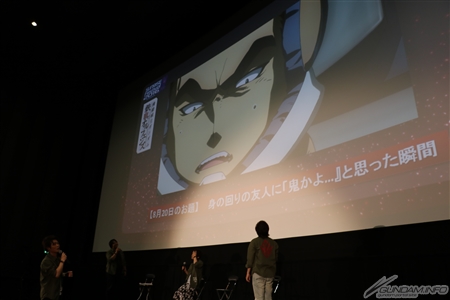 They were asked to highlight scenes they felt deserved close attention in the screening from episode 14 on. Takumi chose the Gusion’s first appearance, while Kawanishi chose Akihiro’s “It’s looking right at us” after the fish appear, Murata, meanwhile, selected the rare conversation between Akihiro and Shino that occured in the MS simulator.
