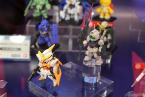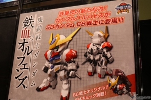 Lo stand Bandai era incentrato sui Gunpla della Seconda stagione di Mobile Suit Gundam Iron-Blooded Orphans, le cui trasmissioni finalmente inizieranno Domenica 2 Ottobre, e in esposizione c’erano diversi modelli in plastica dei personaggi. Inoltre era stata raccolta una vasta varietà di prodotti come gashapon, chogokin ( giocattoli robot in metallo), figure, carte e meal toys.