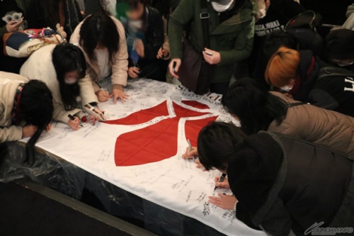 Once the event ended, the Tekkadan flag, which was filled with messages from many of the attendees such as their feelings towards the series and their messages to the characters, was brought up on stage.