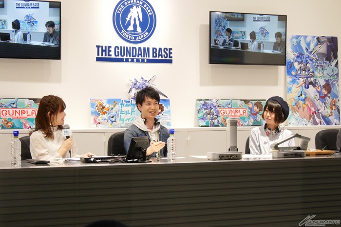 Successivamente, sono stati chiesti circa il gioco \"Gunpla Battle Nexus Online\" che appare nella serie. Kobayashi ha commentato, \"(attraverso il gioco) si possono incontrare persone che un normale liceale junior in genere non sarebbe venuto in contatto con, quindi è interessante.\" Fujiwara ha commentato: \"Non riesco a smettere di sentirsi eccitato circa il mondo!\" Produttore Ogawa ha rivelato anche un interno storia sull'aspetto di ogni subacqueo, \"sono pieni di attenzione e l'orgoglio del direttore.\"