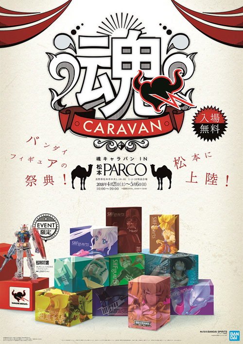 \"Tamashii Caravan a Matsumoto PARCO\", un festival di figura Bandai che riunisce diversi personaggi popolari, si terrà dal 21 aprilest(Seduti) al Parco di Matsumoto in Nagano. L'ingresso è gratuito.