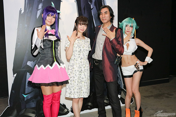 ▲Da sinistra: Cosplayer Negi Kuji, Chiaki Kyan, Shoji Kawamori, Camomilla cosplayer