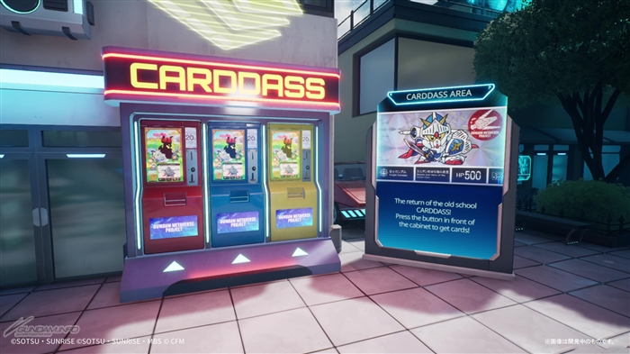 Un distributore automatico Carddass è posizionato nell'atrio principale. La collezione di carte è stata ampliata, includendo anche il Knight Gundam del primo e del secondo evento di apertura limitato. C'è anche una funzione di raccoglitore Carddass che puoi utilizzare per guardare la tua collezione.