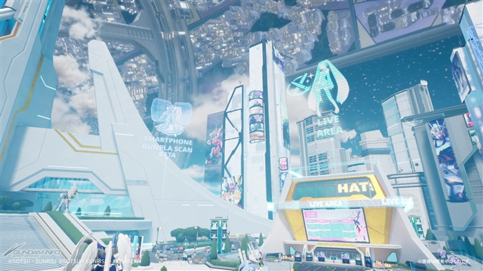 L'atrio principale è uno spazio basato su uno spazio colony e la città dall'altra parte del colony può essere vista sul soffitto, creando una vista coinvolgente. Varie statue di Mobile Suit sono allineate all'esterno e puoi goderti gli sguardi ravvicinati.