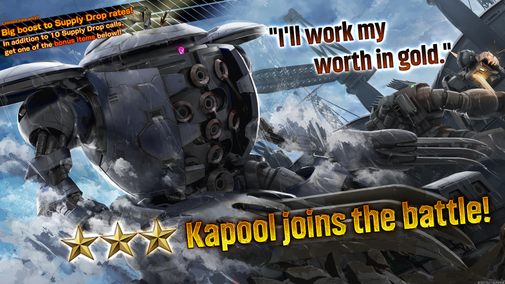 The amphibious MS "Kapool" was developed by the Axis led by Haman during the First Neo Zeon War with the invasion of Earth in mind! It is equipped with a variety of built-in weapons, and even more powerful Iron Nail fighting attacks to keep the enemy at bay!