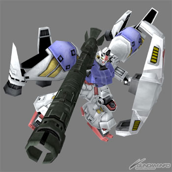 One of the variant loadouts proposed early in the GP02 development program, this suit is equipped with a large beam bazooka based on the mega launcher.