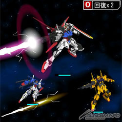 An array of enemy suits stand before the player! Enemy aces, more than a match for any one player, can appear, but players can band together!