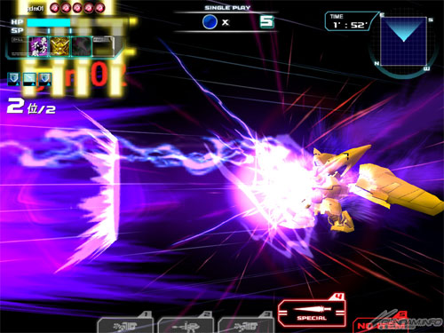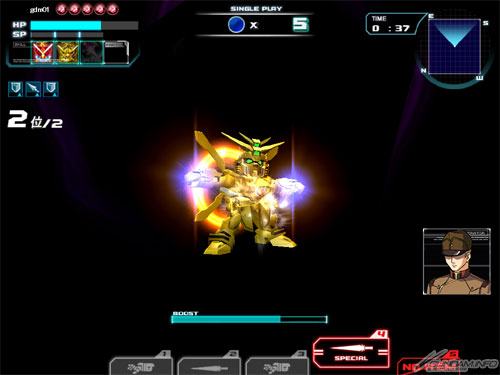 ▲ Burning Gundam glows gold in Hyper Mode. Here’s where the devastating attack begins!