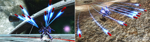 [MS form / flight form] Its ranged charge attack fires missiles from the nine pods mounted on its shoulders.