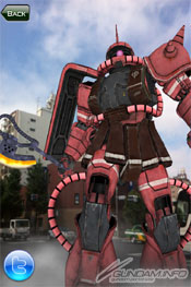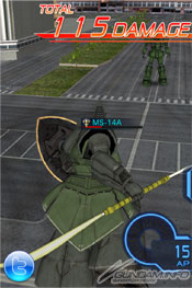 When playing on an iPhone 4, simply touch the AR button after drawing close to an enemy mobile suit on the map and look through the camera viewfinder to see it towering over you!
