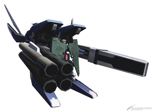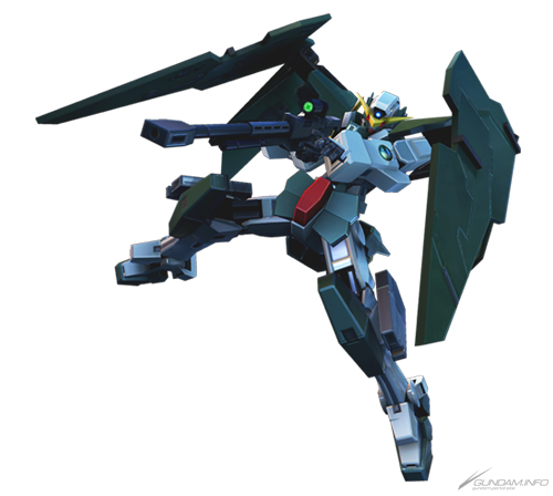 The Gundam Dynames, combined with the GN Arms to take advantage of its upgrade parts. With its GN Twin Rifle and array of containers holding GN Missiles, plus the ability to manifest a strong GN Field, its combat abilities are a step above Dynames's.
