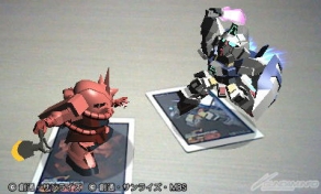 Use AR cards with the code reader to see and photograph mobile suits in 3D! Capture an AR code model, and then use it in-game!